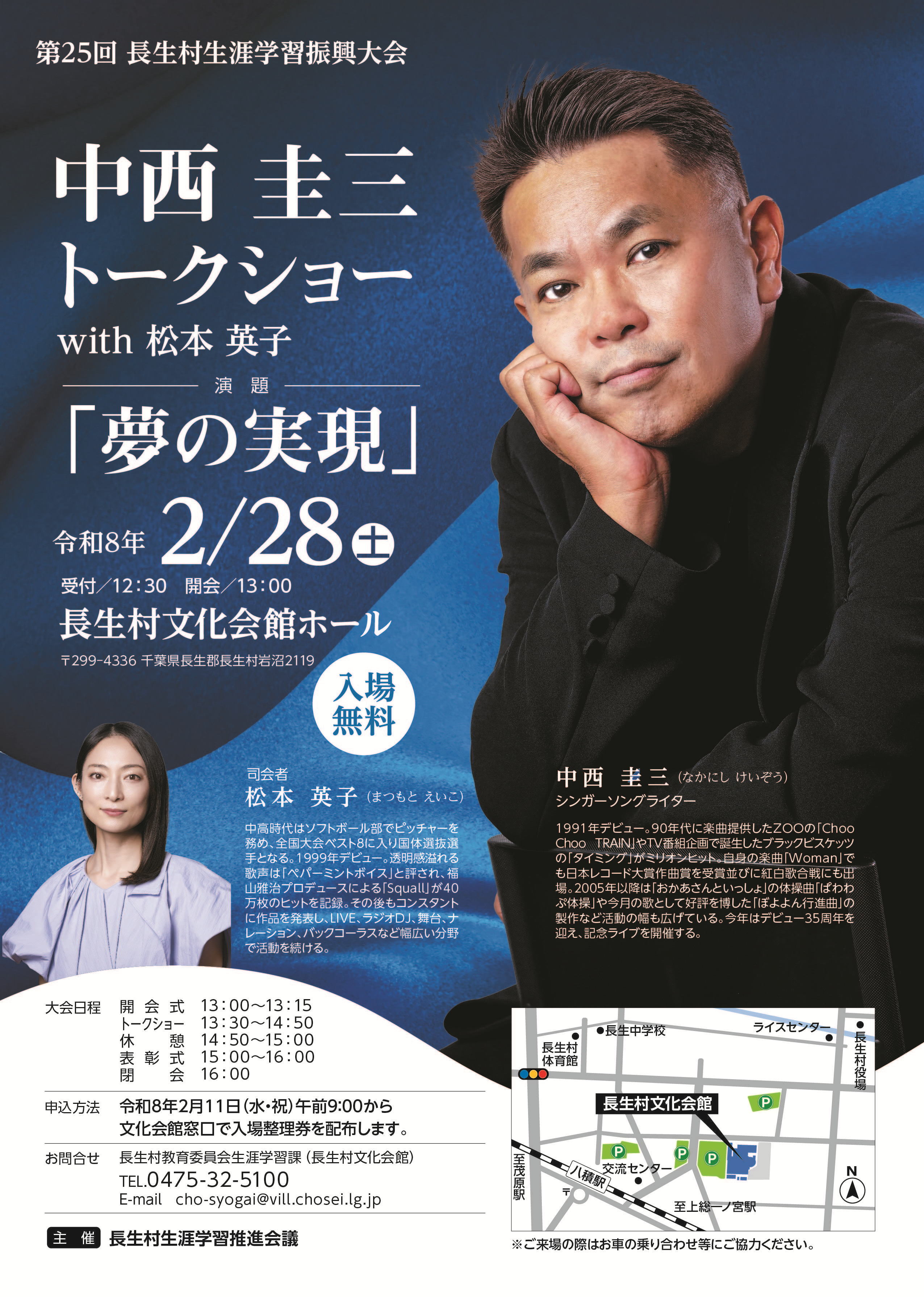 【問い合わせ】長生村教育委員会 生涯学習課(長生村文化会館内)